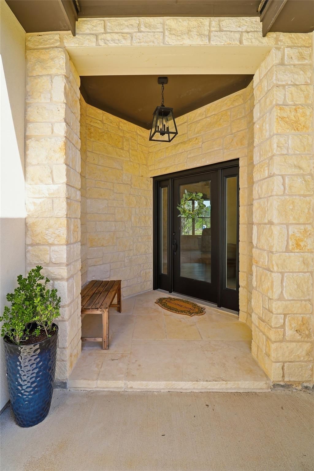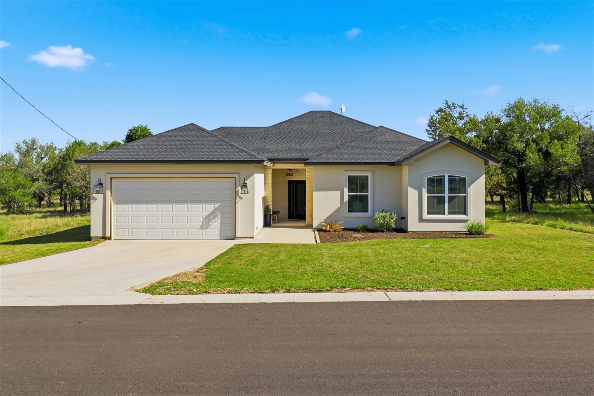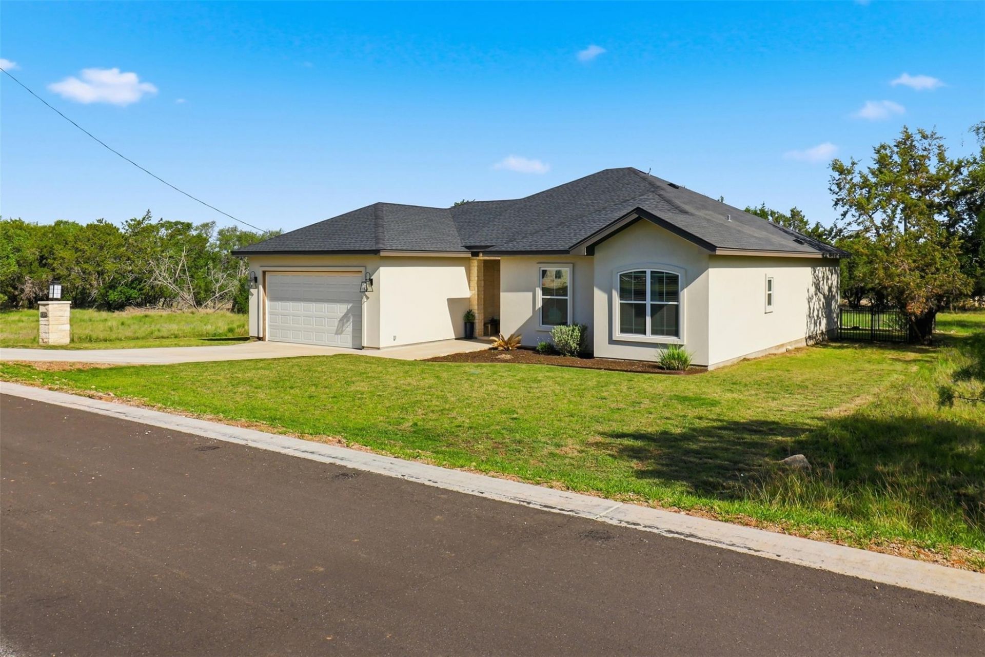 You're sure to fall in love with this 2021 contemporary stucco home located in the hills of Horseshoe Bay! Built by award winning Artisan Creative Homes, this 3 bedroom and 2.5 bathroom home boasts a light-filled open concept living area and a split bedroom floor plan. The fabulous white kitchen connects to both the large dining area and the welcoming living room. And you will appreciate the very spacious walk-in pantry with built in shelving! The oversized .38 acre lot extends street to street, ensuring no one will build directly behind you. Your relaxing back yard view includes grass, hardwood trees and occasional wildlife beyond your ornamental iron fence. Ten and eleven foot ceilings, huge windows, spray foam insulation, 8-foot Shaker doors, luxury vinyl plank and tile floors, island kitchen, honed granite counters, hand crafted cabinetry, stainless kitchen appliances, a spacious master suite filled with light, a huge walk-in primary closet that is connected to the laundry room, dual vanities, beautifully tiled huge walk-in shower, and much more. 1612 White Tail is located just 5 minutes from the Horseshoe Bay Resort, multiple golf courses and, of course, Lake LBJ. Start living the good life today!